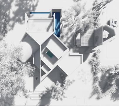 Three voids villa is located in Perinthalmanna, Malappuram, Kerala. The name defines the zoning in the design, where the voids in the floor plan are created to retain the existing tree, well and also to bring a proper cross ventilation in the house. The green space in the west front, the courtyard inside the house in the south east, and the swimming pool in the north east are the so-called voids. Even the massing stands out by creating voids in each space and giving an interesting level of difference in and outside the house.