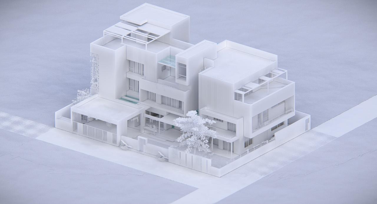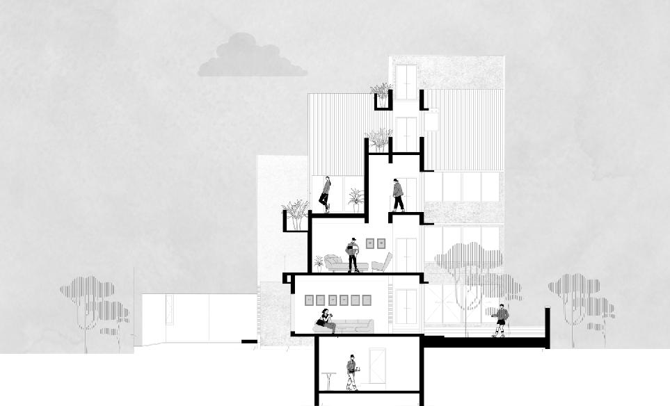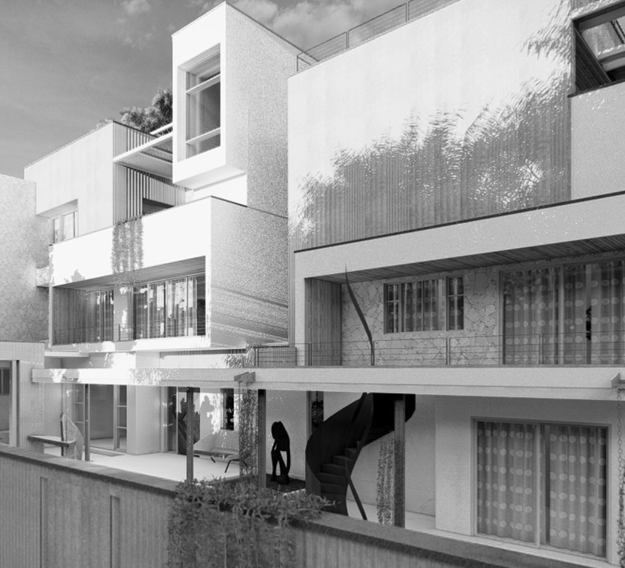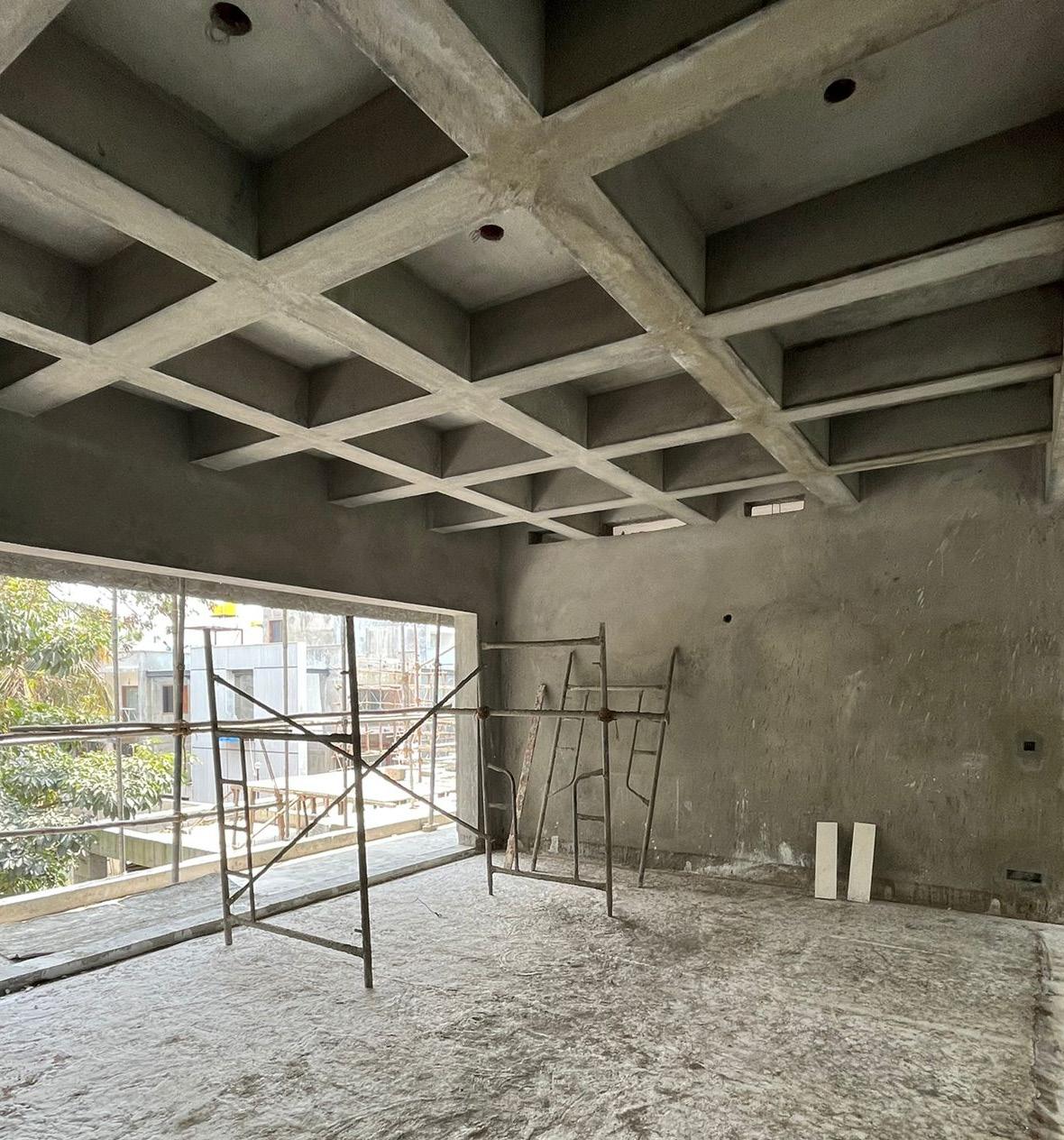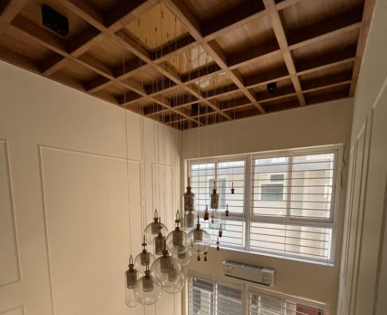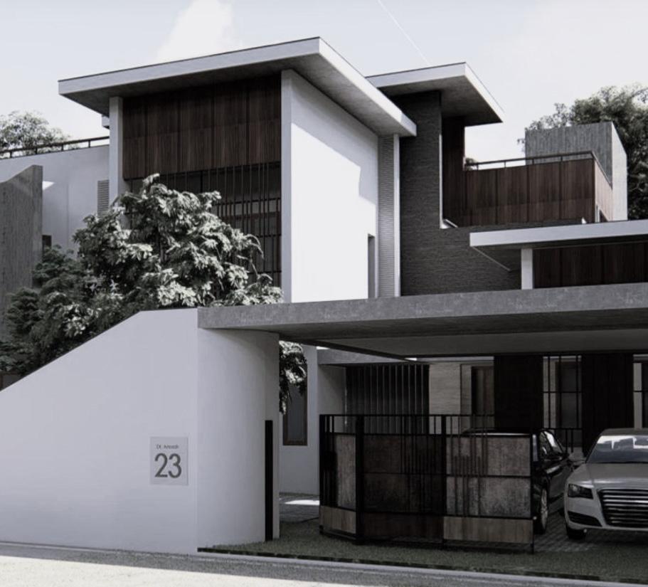 In the elevation, tip wood has been used as a facade element and also acts as a privacy screen covering the large opening of the building without cutting the light and ventilation. Fundermax wooden panel and the texture paint with balanced white space in the exterior bring the warm to it. The interior of the building is followed in a Mid-century modern style with a more wooden feel to match the exterior.