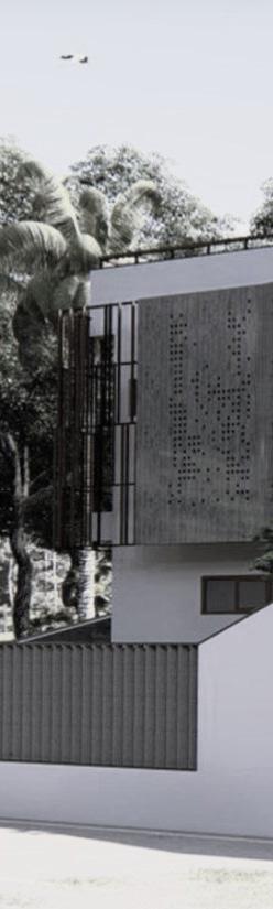 The requirement from the family of 8 of four generations is a 7BHK villa with a large landscape and open areas to entertain the family and friends along with the home office. The site is the northeast corner plot with lush green and coconut trees. To utilize the privileges of the unobstructed East and diffused North light, we tried to place the building mass slightly towards the South West to create East and North gardens.
