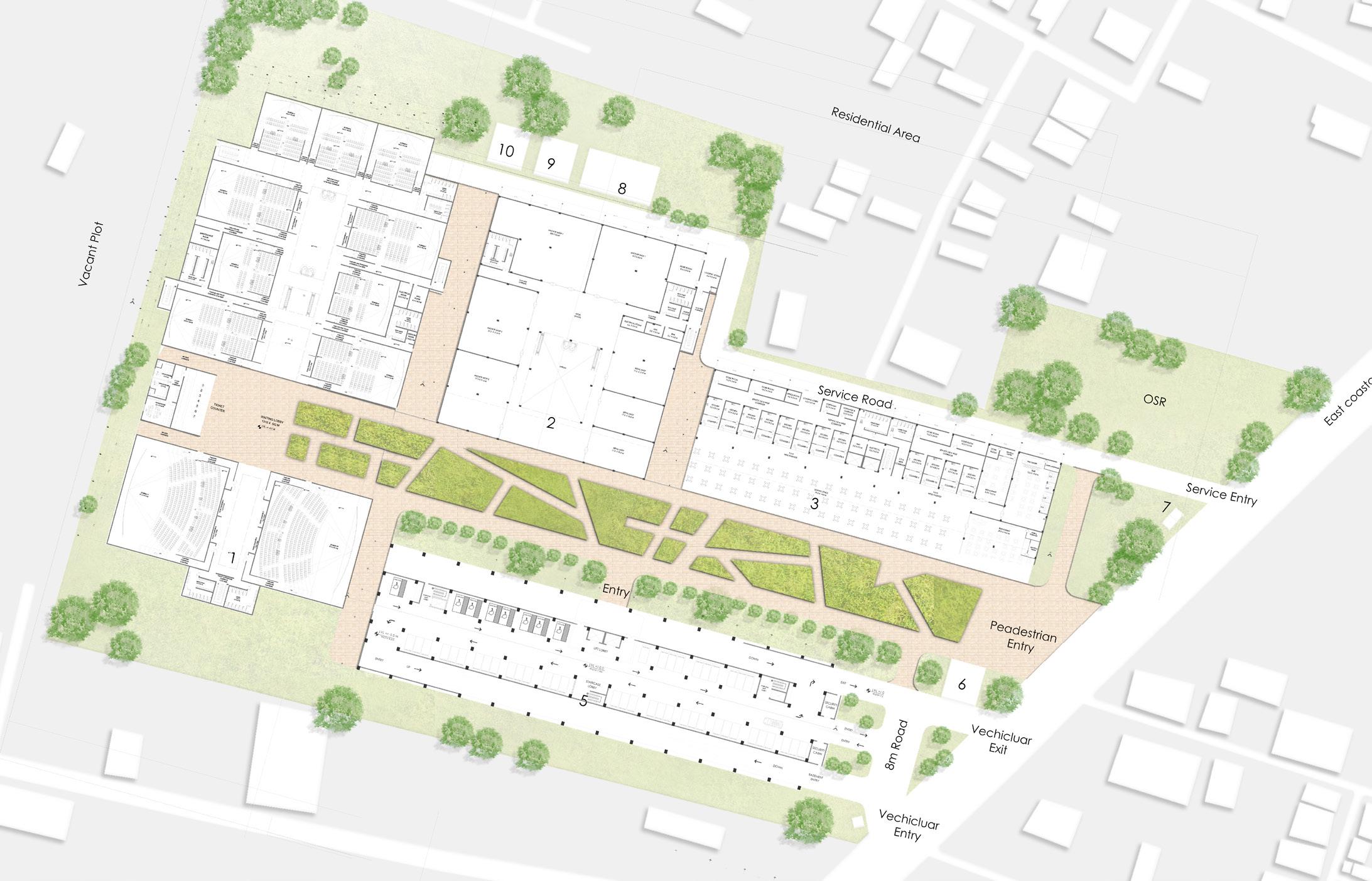 Urban multiplex is a design-based thesis, which has multi screen theatre as a main context along with a Fun zone, Food courts, and Retail shops. Most of the multiplexes are located near the center or in the suburbs of major cities and they contribute to the quality of urban life. This implies containing the growth of commercial developments in the urban or suburban area.