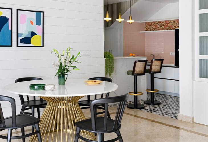 Located in the Whitefield area of Bengaluru, the Prestige Silveroak Villa is an example of what happens when colors meet neutrality. The 2,350 sq ft premise is a home for a family of four—a couple and their two boys and is designed to reflect the family members’ personalities. While each space in the home is treated with a splash of color, what really brings the home together is the spaciousness and supreme spatial quality of the space.