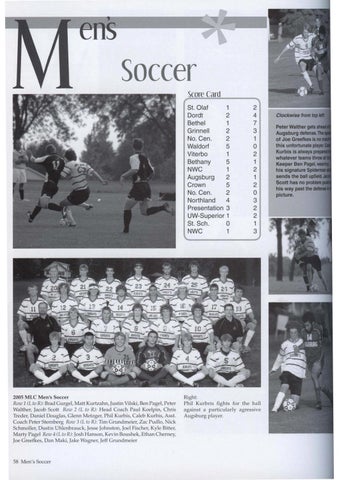 2005 MLC Men's Soccer Row 1 (L to R): Brad Gurgel, Matt Kurtzahn, Justin Vilski, Ben Pagel, Peter Walther, Jacob Scott Row 2 (L to R): Head Coach Paul Koelpin, Chris