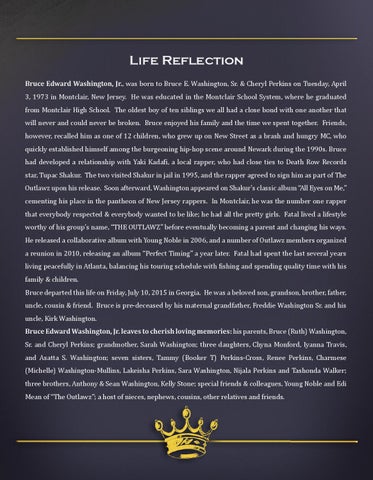 Life Reflection Bruce Edward Washington, Jr., was born to Bruce E. Washington, Sr. & Cheryl Perkins on Tuesday, April