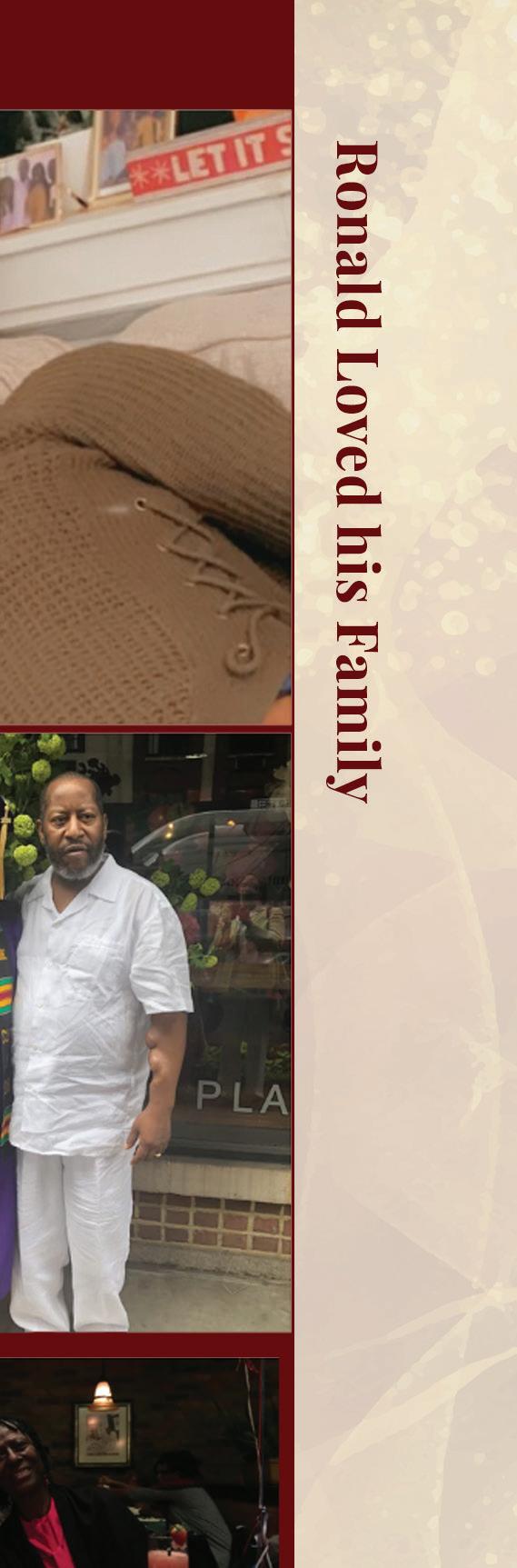 Ronald had a genuine love for life. He especially loved cooking and took great joy in inviting family over to share meals—most famously his fish and shrimp dishes. His passion for cooking led him to work at A Dash of Soul restaurant in Harlem, where his talent flourished through recipes lovingly developed alongside his late mother, Betty.