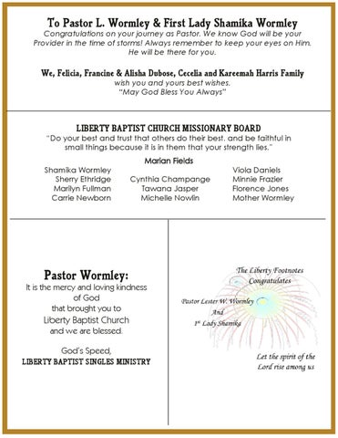 To Pastor L. Wormley & First Lady Shamika Wormley