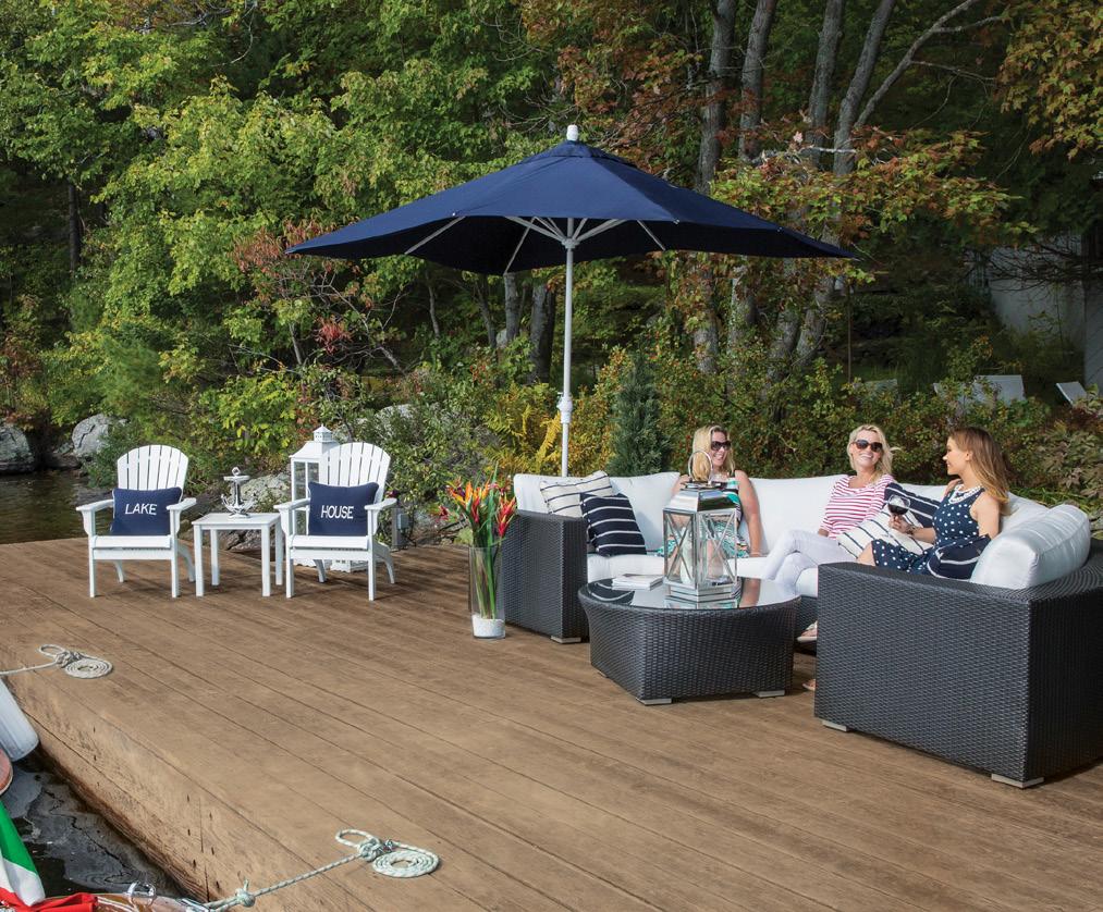 To complete your outdoor sanctuary, explore our vibrant market umbrellas, plush Sunbrella pillows, and weather-resistant rugs and lamps. These thoughtful accents bring both style and practicality to your lakeside spaces, transforming them into havens of relaxation and luxury.