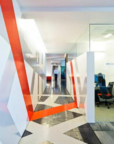 ALSO, ITS SYSTEMATIC HORIZONTAL SEQUENCE MAKES THE SPACE LOOK BIGGER AND ADDS A VIBRANT MOVE THROUGH THE HALLWAYS.