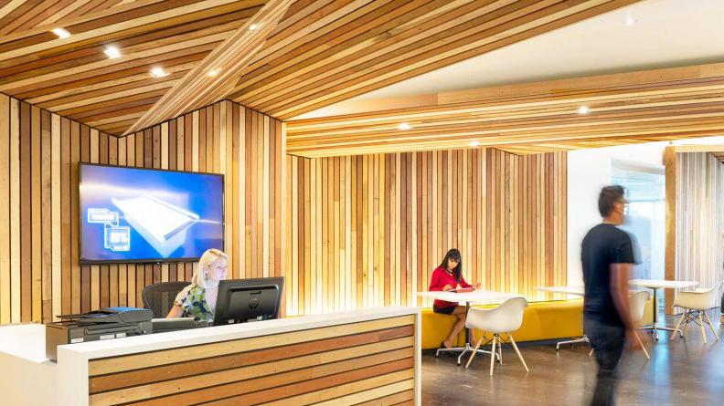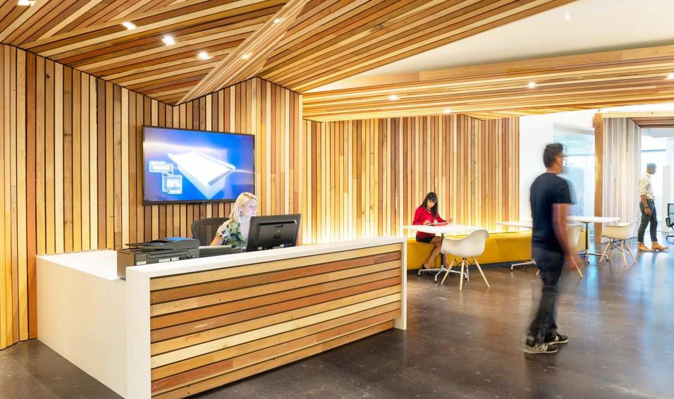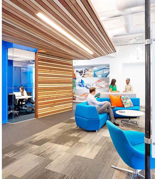 COLOR + PATTERN: THE PATTERN OF NATURAL PALM TREES ARE REFLECTED ON THE CEILING WHICH CONNECTS THE BUILDING WITH NATURE (BIOPHILIA).