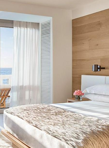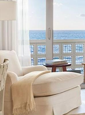 THE ROOM IS SURROUNDED BY SOFT TEXTURES WITHIN NATURAL FIBERS AND WOOD WHICH SPEAK OF THE SANDY BEACHES BELOW.