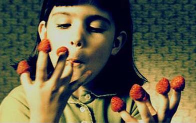 IN THE OPENING SCENE WE’RE INTRODUCED TO THE COLOR RED THROUGH AMELIE’S CHILDHOOD IMAGINATION. RED RASPBERRIES SYMBOLIZE HER PASSION AND VITAL YOUNG MIND.