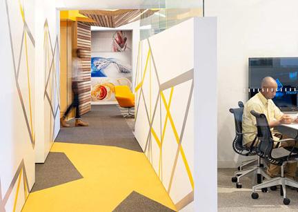 THAT DIFFERENTIATE IT FROM THE OTHER LINES. THIS LINE INSPIRE INTEREST WHILE SUGGESTING QUICK ACTION AND RADICAL MOVEMENT TO THE VIEWER. IT ALSO SERVES AS A GUIDE DOWN THE HALLWAY.
