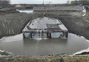 gecontroleerd onder water gezet. “De stroming van de Schelde is namelijk bijzonder sterk en zou, zonder extra maatregelen, het al gebouwde tunnelelement kunnen beschadigen”, klinkt het. “In januari hebben we ook de oude Scheldedijk weggegraven waardoor de tunnelconstructie nu ook echt in de Schelde ligt.”