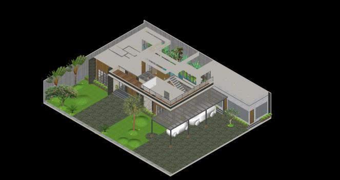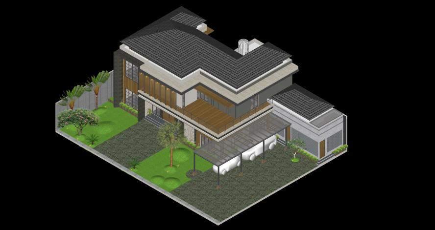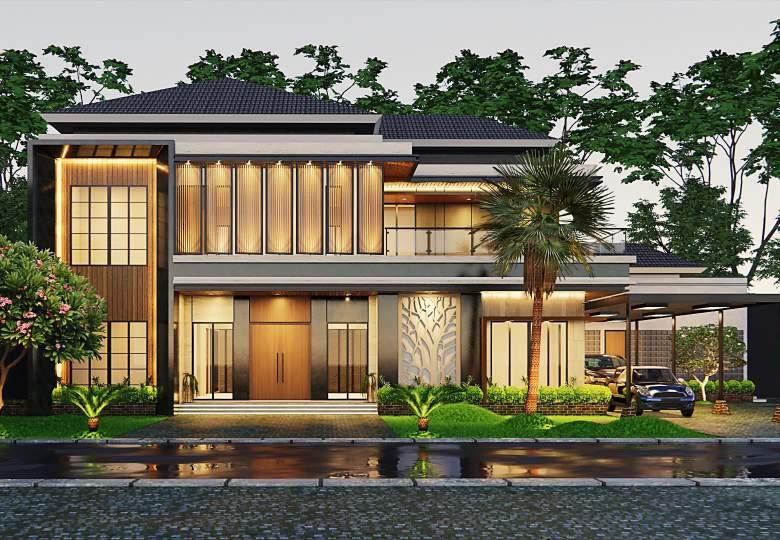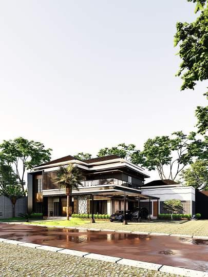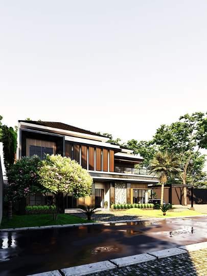 Bangunan ini mengadopsi gaya desain rumah modern tropis dengan elemen kontemporer Rumah ini menggabungkan desain modern dengan penyesuaian untuk iklim tropis. Ciri khasnya terlihat dari penggunaan bukaan besar, elemen shading (peneduh), serta perpaduan material alami dan modern. Komposisi fasad simetris