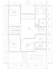 Bangunan ini menampilkan desain eksterior yang modern minimalis dengan garis-garis bersih dan proporsi yang