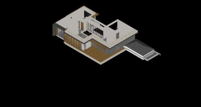 bangunan ini memberikan kesan modern, minimalis, dan elegan. Penggunaan material dan warna yang netral serta