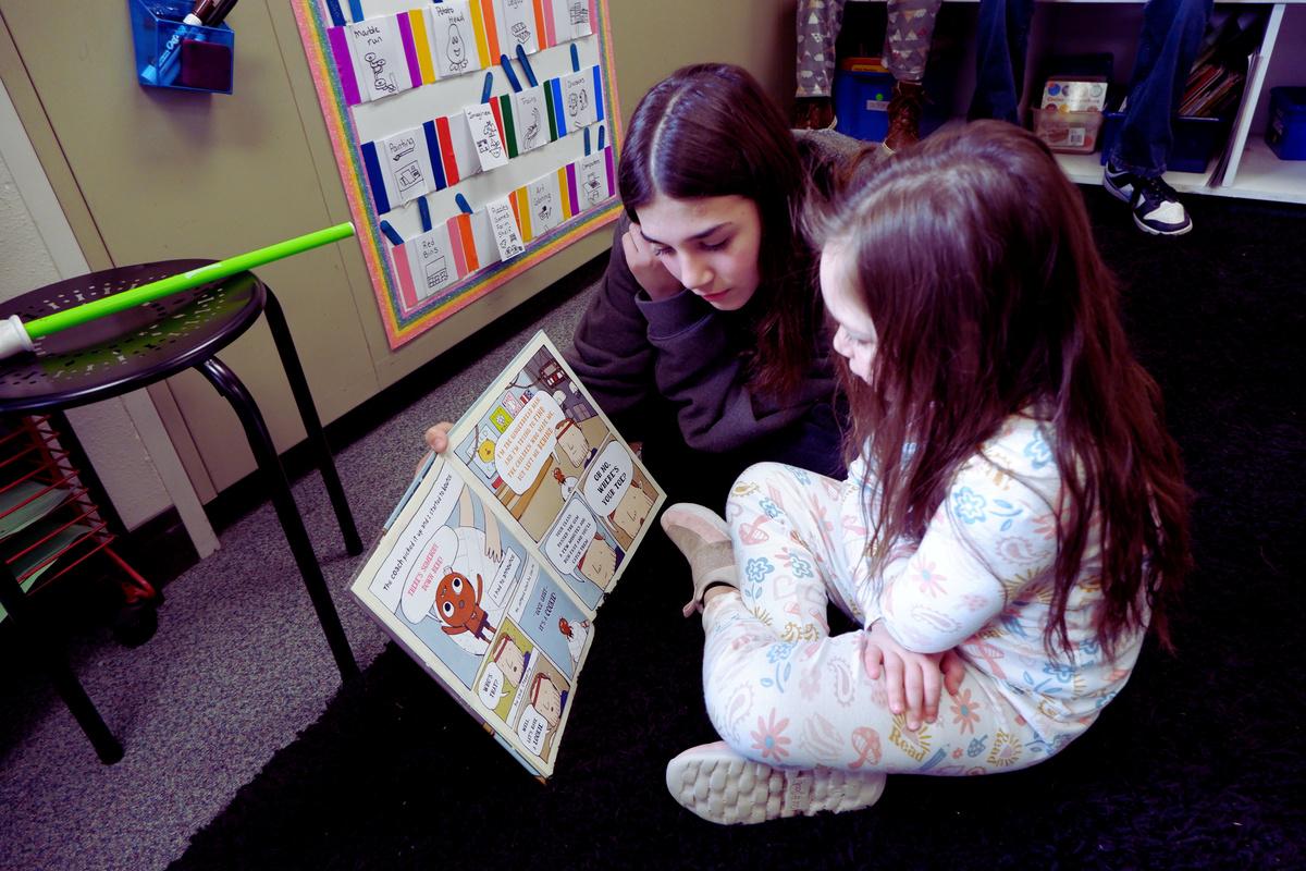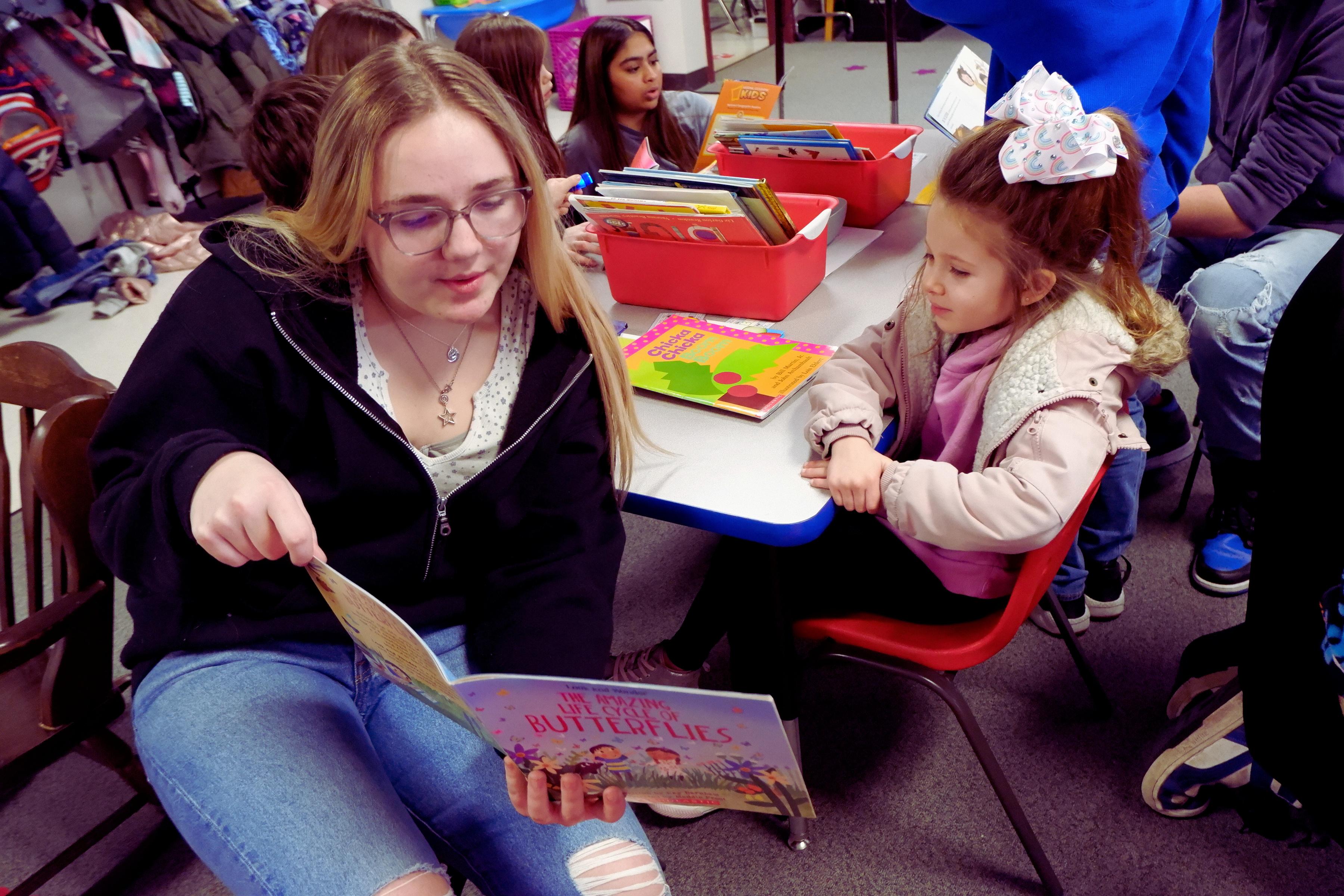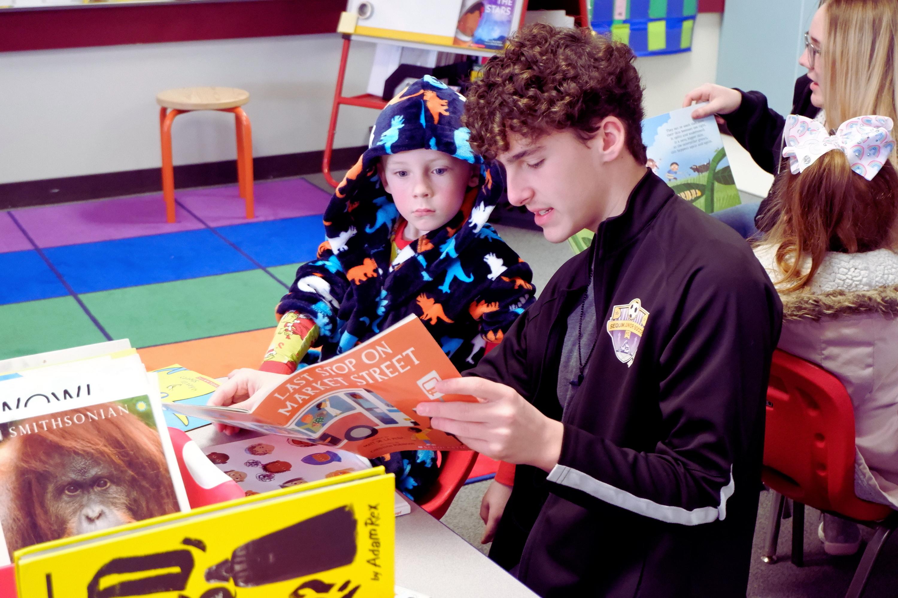 On March 1st, the halls of Greywolf Elementary resonated with the excited sounds of storytelling and shared enthusiasm for books as 8th graders from Sequim Middle School joined our youngest Sequim School District learners to celebrate Read Across America Day. The annual Read Across America Day was established by the National Education Association (NEA) in 1997 as a comprehensive reading program designed to encourage children of all ages to explore the world of books and reading.