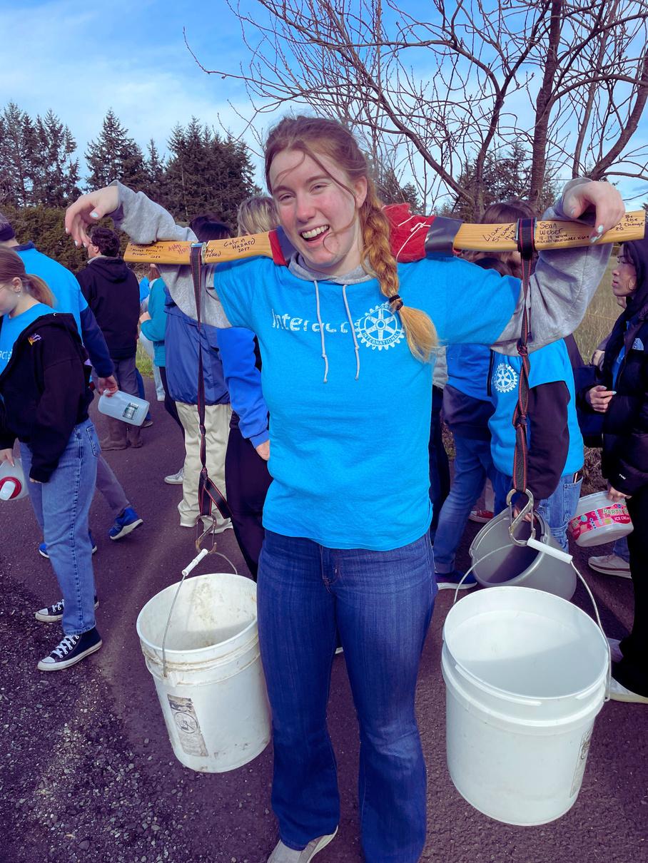 The event has become a rite of passage for Interact Club students, demonstrating their commitment to making a positive impact beyond their everyday. In 2017, Calvin Hazard crafted a yoke to transport two large water buckets, easing the burden of the Walk for Water journey. Since then, carrying the yoke has become a symbol of honor, with the president of the Interact club leading the way on this symbolic journey. This year, Krista Charters, the current president, added her signature to the yoke as she marched with her club