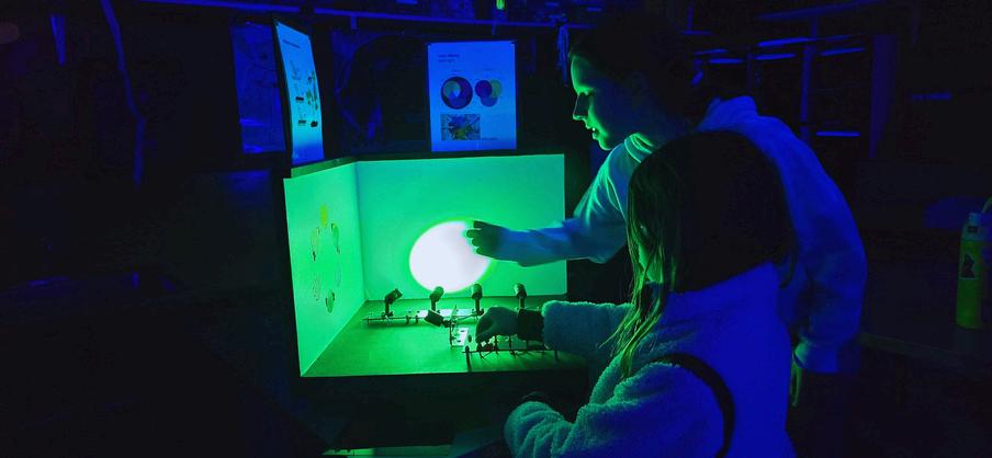 The idea for the event began early in the school year with a conversation about whether a second science-themed night would be held. Once confirmed, the vision quickly took shape around the theme of light. This theme led to a collaboration with local artist Ross Brown, known for his light-based showcase boxes. After meeting at Rain Shadow Café, Brown agreed to participate and recommended a darkened room to best display his work. The suggestion sparked the creation of a UV Light/Black Light immersion experience in the STEM classroom.