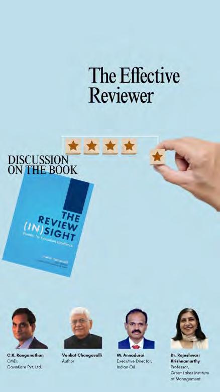 C.K. Ranganathan: Ideally, reviews are not about fault-finding, but about helping the team find solutions, identifying opportunities and charting the way forward. Unfortunately, many organizations still conduct ‘enervating’ reviews where the boss shouts at the team for small lapses, leaving people dreading the next meeting. In contrast, great leaders make reviews something their teams look forward to, because they know they will learn, grow, and find solutions. That is why such leaders are remembered with respect, and why so many people who worked with Venkat not only advanced in their careers but also grew personally.
