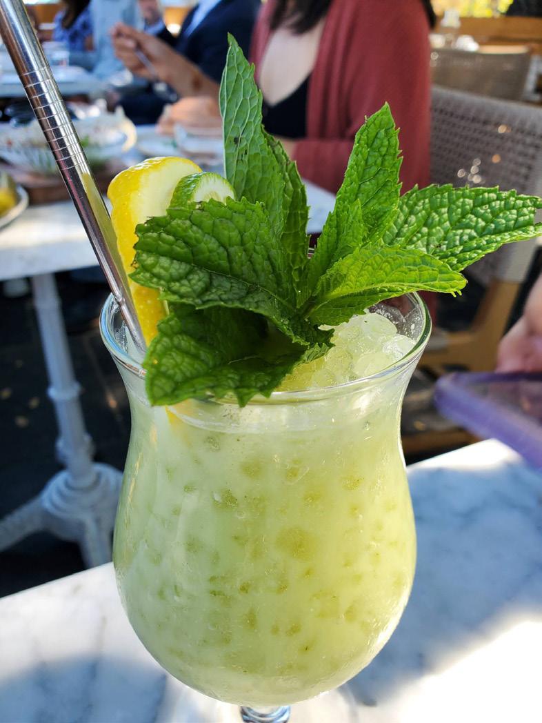 By CINDY CRUZa plethora of fresh herbs and veggies: snap peas, eggplant, asparagus, tomatoes, cilantro, mint, and basil, garnished with chilies and peanuts in a soy-citrus dressing. The cold noodles with the veggies and herbs offered a delightful medley of textures – soft, chewy noodles, crispy vegetables, and crunchy peanuts, all highlighted by the perfectly balanced acid and umami from the dressing. The flatbread was good too, layered with cashew cheese, broccolini, and mushrooms under a generous heap of peppery arugula. The chew on the flatbread was divine – firm but with the right amount of chew with crispy edges.
