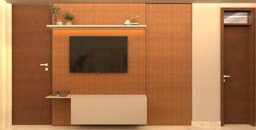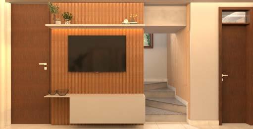 A escada enclausurada, isola o acesso ao pavimento superior, por meio de um painel de TV com uma porta camuflada (Figura 36 e 37), que deixa disfarçado esse acesso e também isola os ruídos das áreas comuns para a área íntima, localizada no pavimento superior.