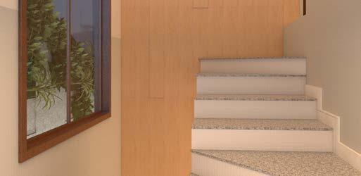 A escada (Figura 55), por ser um elemento de transição da área social para a área íntima, contou com iluminação quente, na temperatura de 3000K e com o revestimento cerâmico Eliane, Park Camel NA.