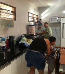 O aproveitamento da mesa da cozinha existente, de 8 lugares, foi crucial para área gourmet, servindo para refeições quando houver visitas e também para os frequentes jogos de dominó. Além disso, foi escolhido um modelo de churrasqueira mais sustentável, que não produz fumaça.