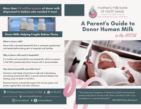 For information on donor milk programs...see back page.