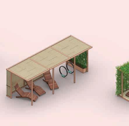 structură principală din oțel galvanizat, acoperiș din țesătură acoperit cu strat PVC, cadru de oțel cu lamele de lemn, care servește drept zonă de relaxare.