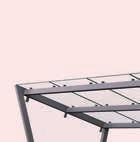 Oceľová zinkovaná konštrukcia opatrená práškovým vypaľovaným lakom. Strecha zo sklolaminátových prútov a polyesterovej tkaniny, s odolnou PVC vrstvou s UV ochranou, a antikorovým napínacím mechanizmom. Oceľový rám s drevenými lamelami pri variante daybed.