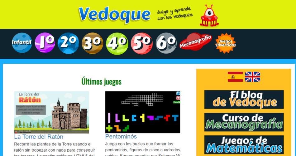 Vedoque ofrece una amplia variedad de juegos educativos que abarcan temas como matemáticas, lengua, ciencias, geografía y más. Sus juegos suelen ser interactivos y están diseñados para ser atractivos y didácticos al mismo tiempo.