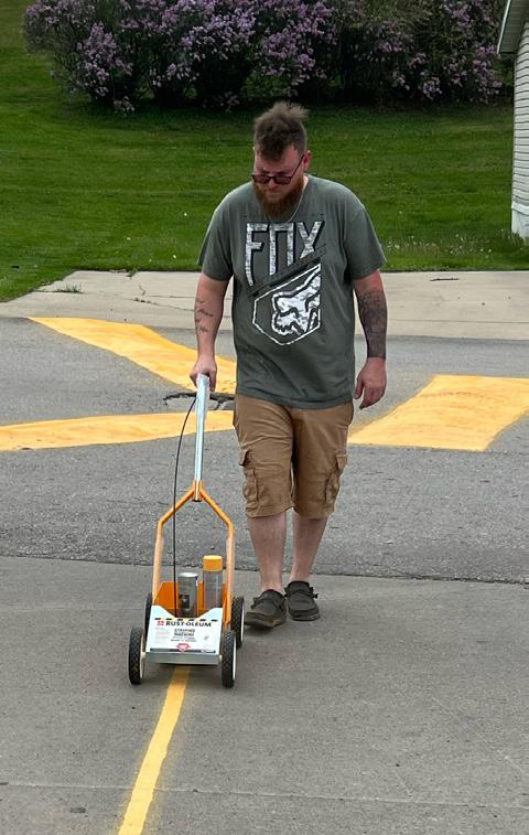 Speed bumps and parking lines/bumpers painted. Jeff Redinger from South Arlington Estates advises using a quality, oil-based paint for these areas rather than latex. Otherwise, you will have to repaint almost every week. He also said to give it a full day to cure and set.