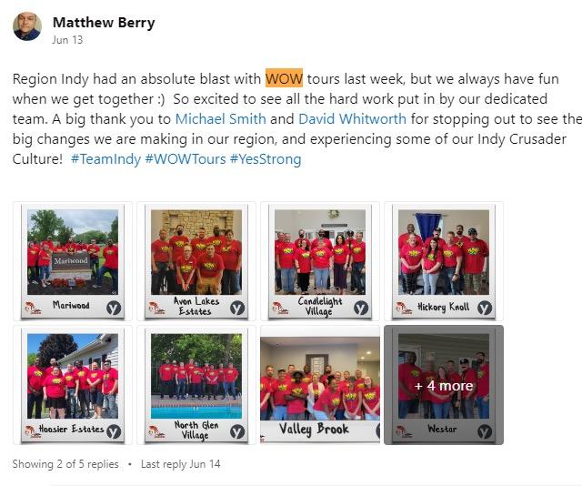 “I realized over the course of the week that CMs, SLAs, and Maintenance are the backbone of the company and without them, there is no YES Communities”