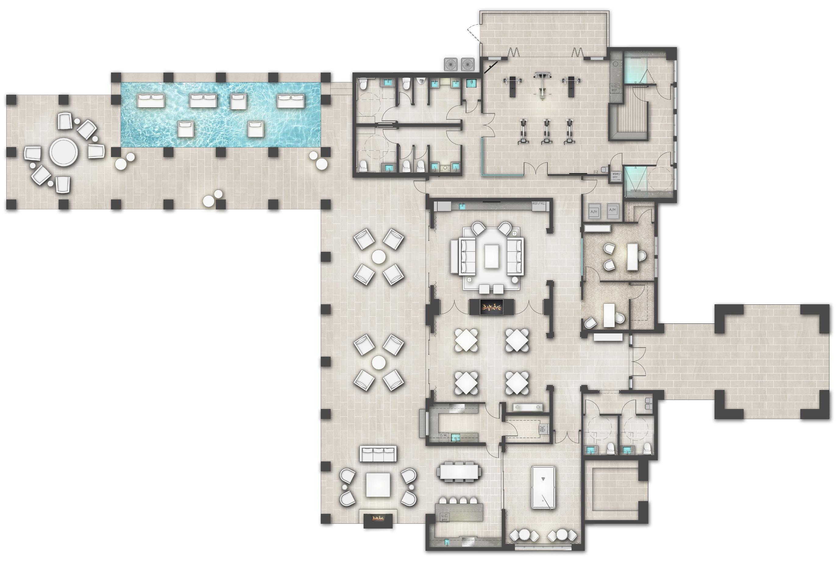 Marc-Michaels Interior Design is responsible for designing all common areas, including the spa, interior swimming pool and the private residences.