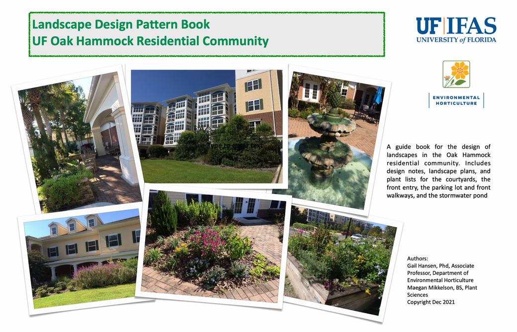 A guide book for landscape design in the Oak Hammock residential community Includes design notes, landscape plans, and plant lists for the courtyards, front entry, storm water pond, parking lot and ways