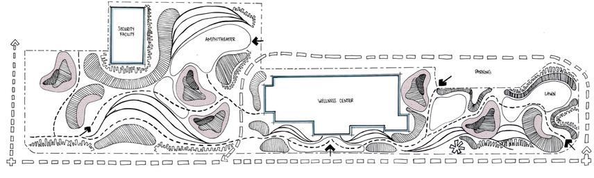 Encouragevisitorstoputphones awaybyofferingconformable spacesembeddedinnature Provideaccessibletrasfor physcaandemotionalbenefits Usenaturamaterasand texturestoformscupturalseating formeditationandmindfulness 1 2 3 HEALTHANDWELLNESS Facitatesocaengagement throughquietmomentsinthe terracedbermsandrefection gardens/paths Provideamphtheaterstyle seatingforinteractiveand immersiveconversations Offerintmatespotsfor contempationandcounseling 1 2 3 COMMUNITYANDUNITY G O A L S & O B J E C T I V E S Enhancetheexistng ecosystembyusnga coectionofnativeplants Constructanaturalbufferfor soundandprivacy mplementsensorygardenfor dscoveryandmedatng anxiety 1 2 3 PLANTPALLET UFLCOUNSELINGANDWELLNESSCENTER 1 C O N C E P T U A L S C H E M A T I C M A S T E R P L A N