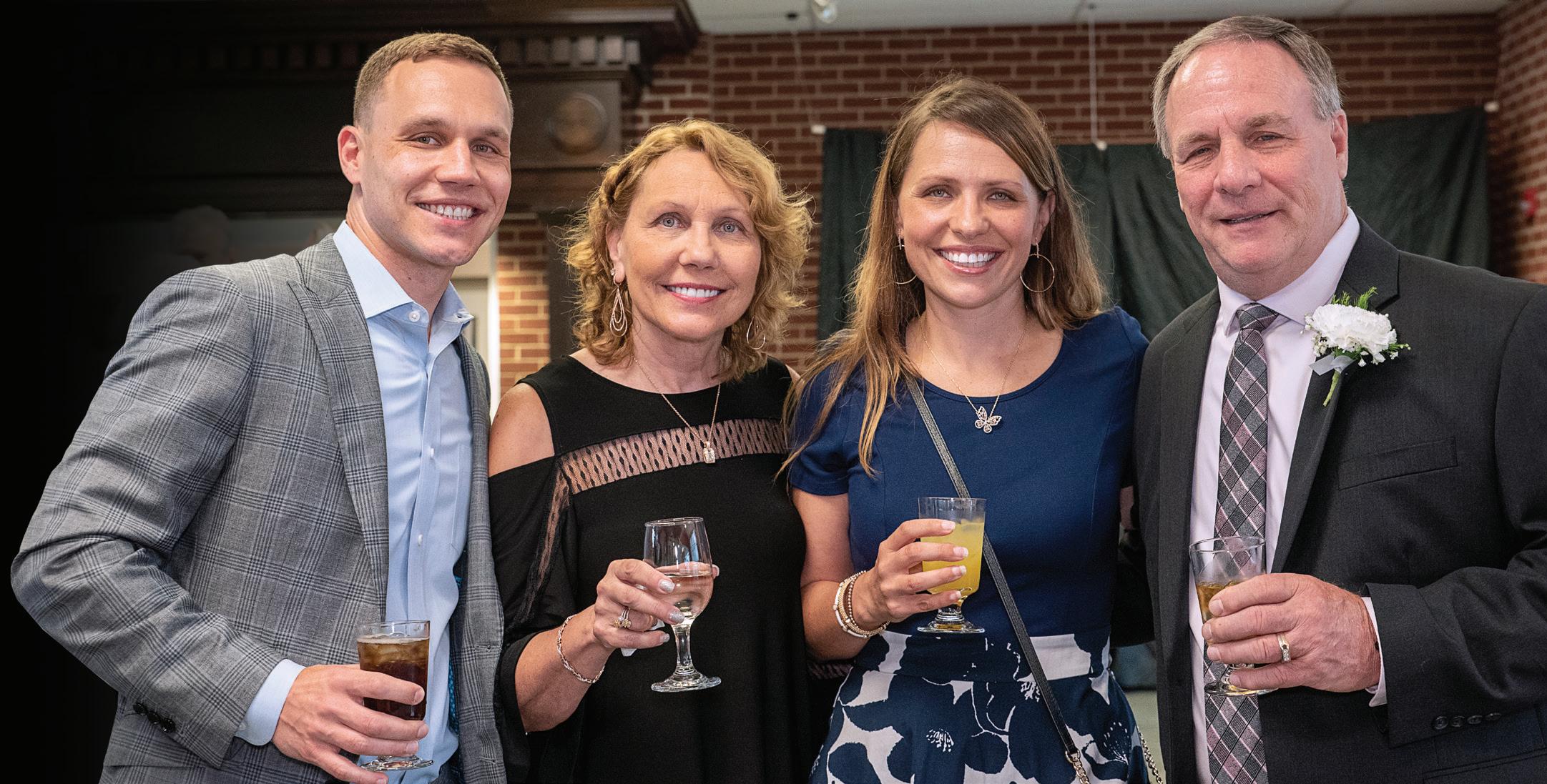 From left, TJ Crofcheck ’03, Mary Lynn Crofcheck, Jamie (Crofcheck) Gunderman ’00, and Tom Crofcheck ’73 celebrate Tom Crofchek’s induction into the MMI Wall of Fame in the category of Professional Achievement.