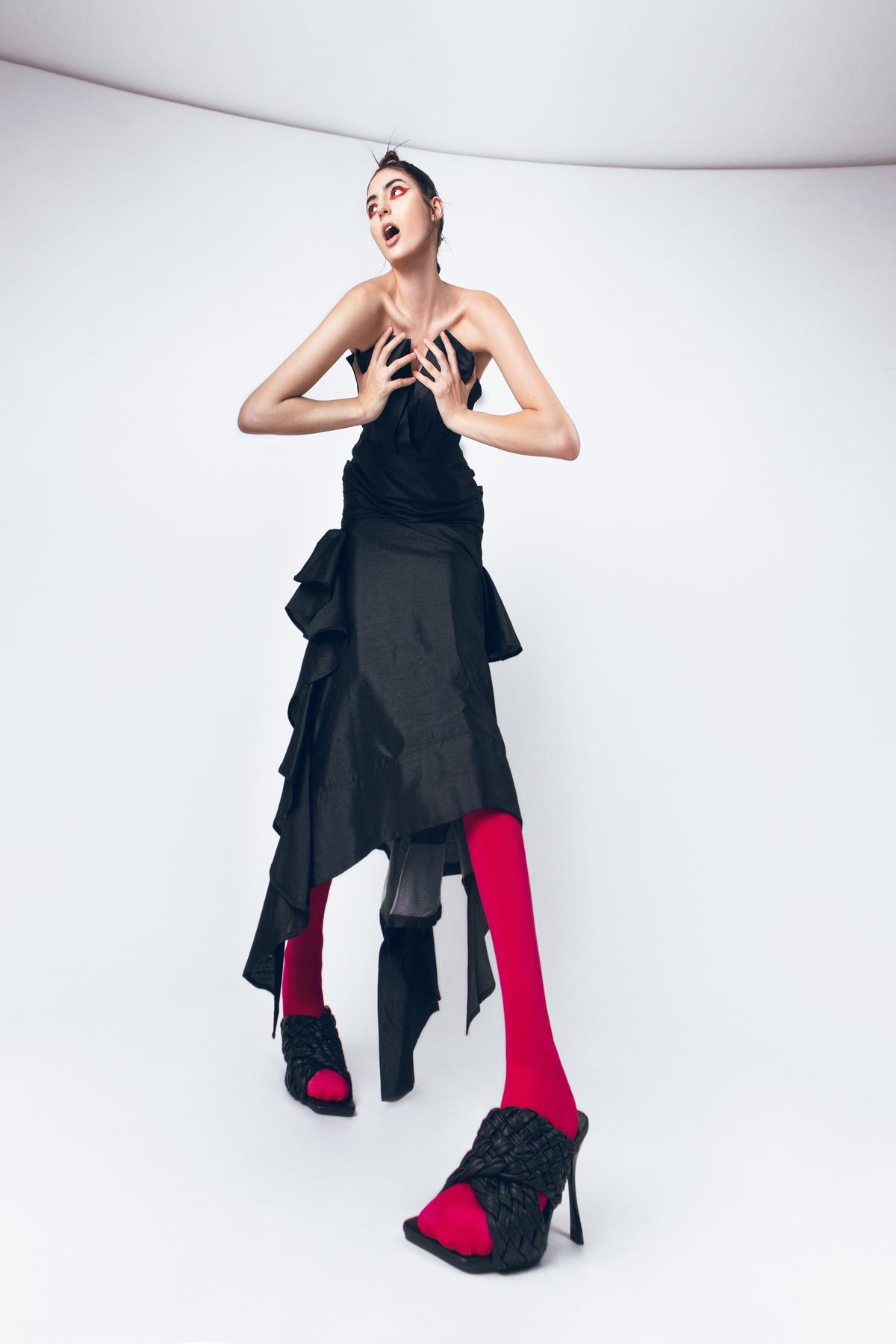Contrasting slightly more traditional looks with more haute couture ones, so that there is this fusion, contrast and visual paradox between the socially traditional with the dystopian that gives voice to art and captures that image of our dreams combined with the image of what it means being part of a generation whose future is uncertain and very subjective.