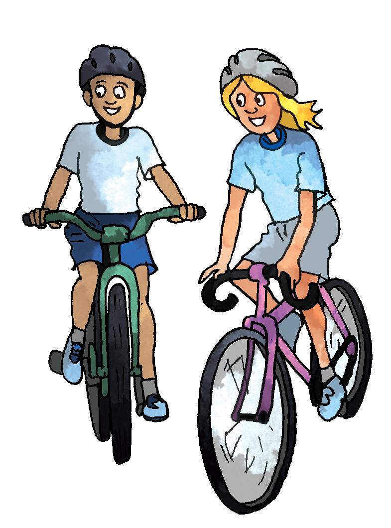 Before you go cycling, make sure you are wearing sensible, closed shoes. Takkies are the best. You should also wear a helmet to protect your head in case you fall off your bicycle.