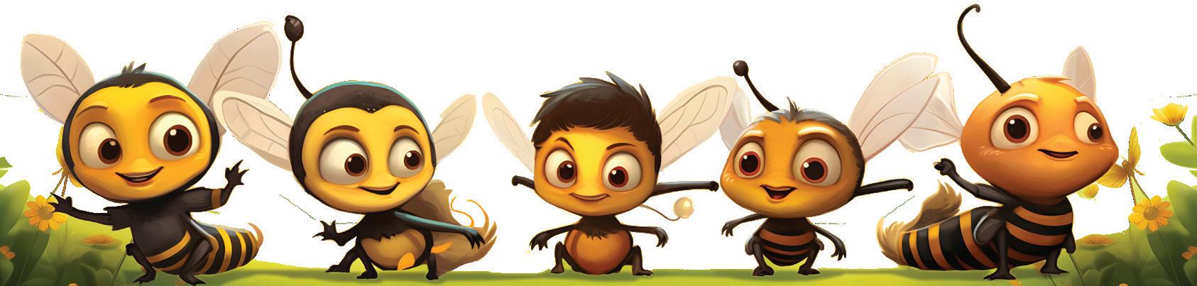 Just like humans, bees have different jobs. WORKER BEES collect nectar and pollen. NURSE BEES take care of the baby bees. DRONES protect AMAZING TEAM PLAYERS! They work together in colonies to collect nectar and pollen, build hives, and take care of their queen and young bees. The QUEEN BEE is in charge of the hive. She lays all the eggs and keeps the withorganisedhive the help busy BEES BEES ARE SUPER-BUSY INSECTS! 2 FREE 4 ALL March 2024 DESIGN & LAYOUT DISTRIBUTION CONTACT DETAILS PUBLISHER ACCOUNTS MANAGING EDITOR ADVERTISING B-BBEE status: Level 1 Content Developer Seugnette Comber seugnette.comber@mml.co.za Key Accounts Manager Gemma Howe gemma.howe@mml.co.za 031 763 3916 Seugnette Comber seugnette.comber@mml.co.za Mike Cardy distribution@free4all.co.za Shelly Cathro shelly@cathro.co.za 083 792 6484 Senior Visual Designer Mike Chaplin michael.chaplin@mml.co.za Visual Designer Jolene Hall jolene.hall@mml.co.za Jacques Breytenbach jacques.breytenbach@mml.co.za PHONE 031 763 3916 seugnette.comber@mml.co.za