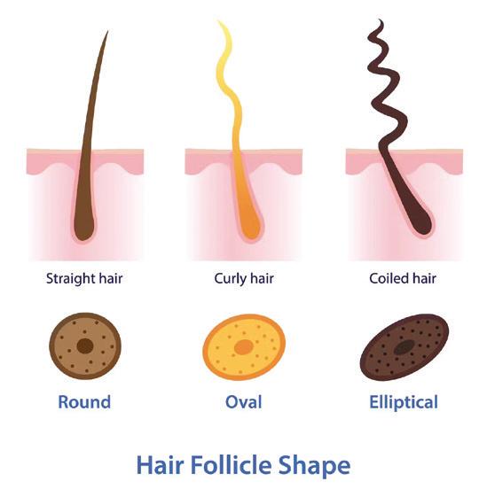 The fundamental difference between STRAIGHT and CURLY hair lies in the shape of the hair follicle.