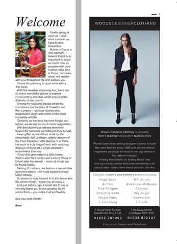 Finally spring is upon us – and what a month we have to look forward to. Mother’s Day is a real highlight. I believe that it is so important to enjoy as much time as possible with your mother, after all it is those memories which will remain with you throughout life and sustain you. I know I'm planning to spoil mine with a trip away. With the weather improving too, there are so many wonderful places to explore incorporating activities whilst enjoying the diversity of our county. Among my favourite places when the sun shines are the likes of Howletts and Port Lympne – glorious countryside, magnificent views with some of the most incredible wildlife. Certainly as the days become longer and lighter, we all feel so much more invigorated. With the blooming of natures wonderful flowers the season is something to truly behold. I was gifted a marvellous book by the remarkable Jeff Leatham, artistic director of the Four Seasons Hotel George V in Paris. His work is truly magnificent, with amazing displays of floral art. I whole heartedly recommend it to you. If your thoughts extend a little further, there's also the Holiday and Leisure Show in Dover later this month – more of which can be found inside. Talking of mothers, we feature a remarkable mum this edition - the multi award-winning Meryl Streep. So plenty to look forward to in this issue and the whole month. I hope you all enjoy it. And just before I go, I would like to say a very big thank you to our growing list of subscribers – you make it all worthwhile.