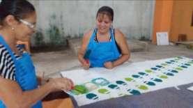 Apresentação das etapas; Introdução e noções básicas de pintura em tecido; Desenvolvimento de estampas valorizando a identidade local; Definição e produção inicial das peças; Acabamento e padronização