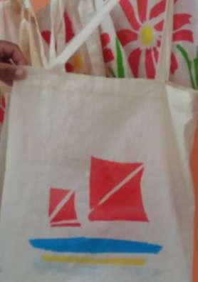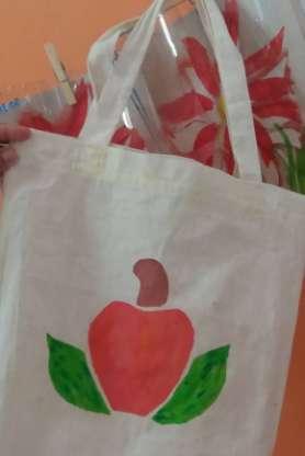 Atividade de confeccionar bolsa modelo ECOBAG em tecido (Bolsa foi utilizada nacapacitação empinturaemtecido);