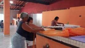 A bancada em setor em frente ao de Costura, dispõe de bebedouro com copos e suporte para recebimento e distribuiçãodelanches.