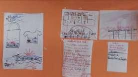 As paredes do espaço de produção foram destinadas comunicação. Sendo uma de painéis, destinada a quadro de escala de limpeza; regras de convivência; planejamento semanal. Outra parede destinada a projeção de slides e uso de flip chart nas oficinas. Foi criado também um mural de boasvindas e recados e um Quadro Imaginário (Painel Iconográfico ou Painel Temático) comreferências de Moda para inspiraçãodogrupo.