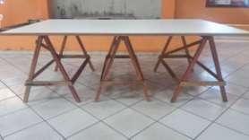 A Bancada, produzida pelo IDSS, foi posicionada em frente às maquinas, e usadas para suporte de corte, alinhamento de tecido, marcação de molde, alémde apoio para a capacitação debordadoecrochê.