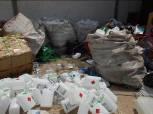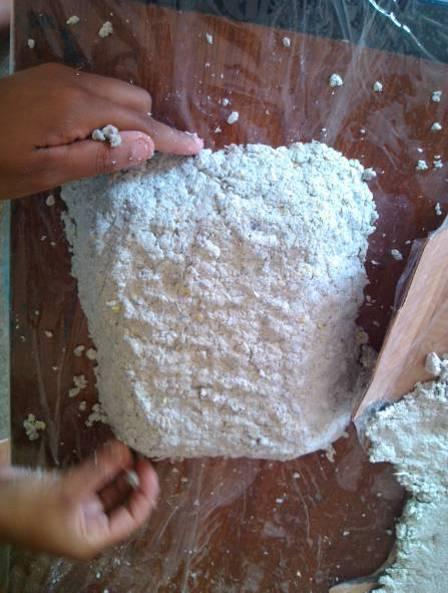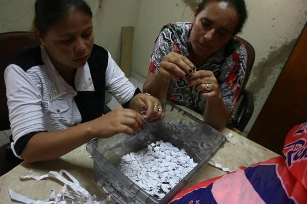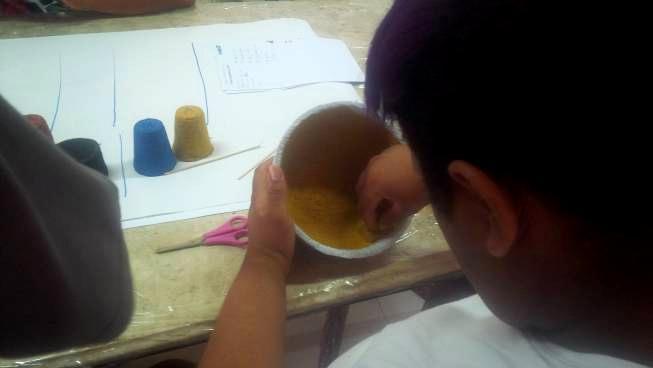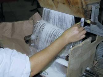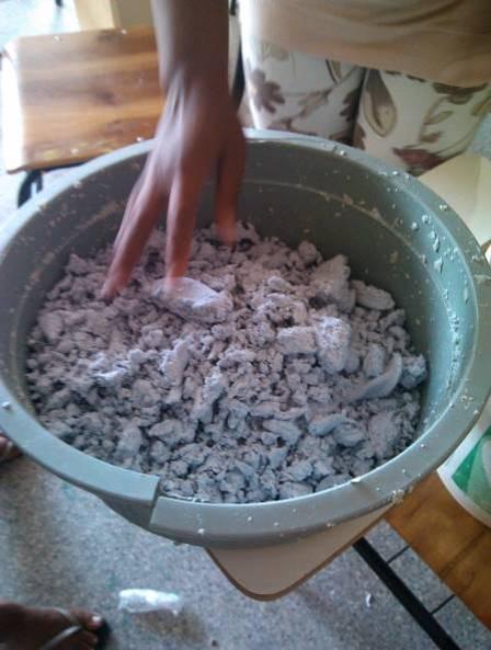 Preparação de insumos (papel separado e picotado).