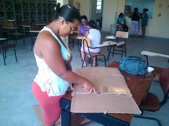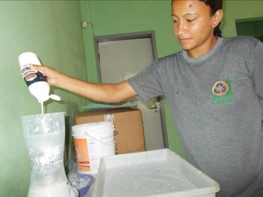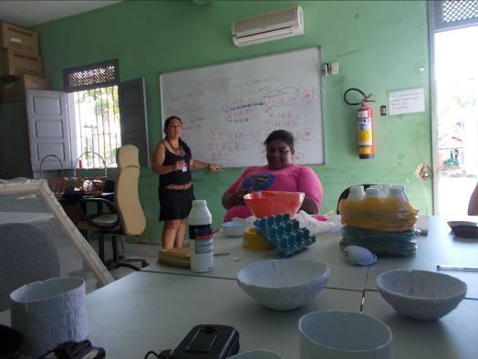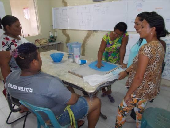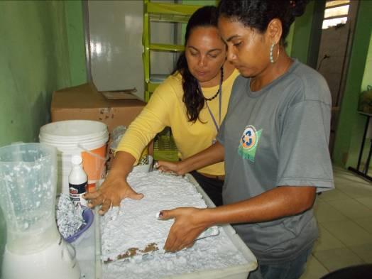 A técnica implantada inicialmente foi a da reciclagem do papel (apara branca, jornal e papelão) por ser de fácil assimilação em processos iniciais. Esta estratégia foi adotada de forma a iniciar um processo de consciência de trabalho coletivo, mas as integrantes foram trabalhadas de forma a entenderem que o processo de desenvolvimento produtivo pode ser implantado com outras técnicas e insumos, assim, em atividades futuras podem-se trabalhar novas matérias primas, como o vidro, por exemplo, embora este demande o investimento de equipamentos específicos (ver Diagnostico apresentado no inicio deste documento).