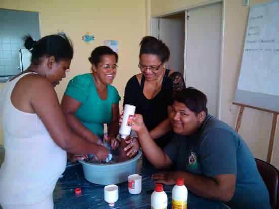 Algumas integrantes (em especial a Sra.Luzia) se mostraram comprometidas e interessadas, assimilando bem o conteúdo apresentado, e inclusive evoluindo com ideias próprias. Isto possibilita a multiplicação do saber adquirido posteriormente.